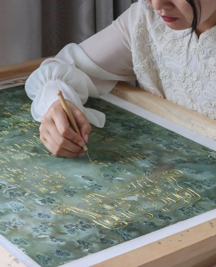 ZHU Xinling, artiste et designer chinoise contemporain, créateur de broderies de style.