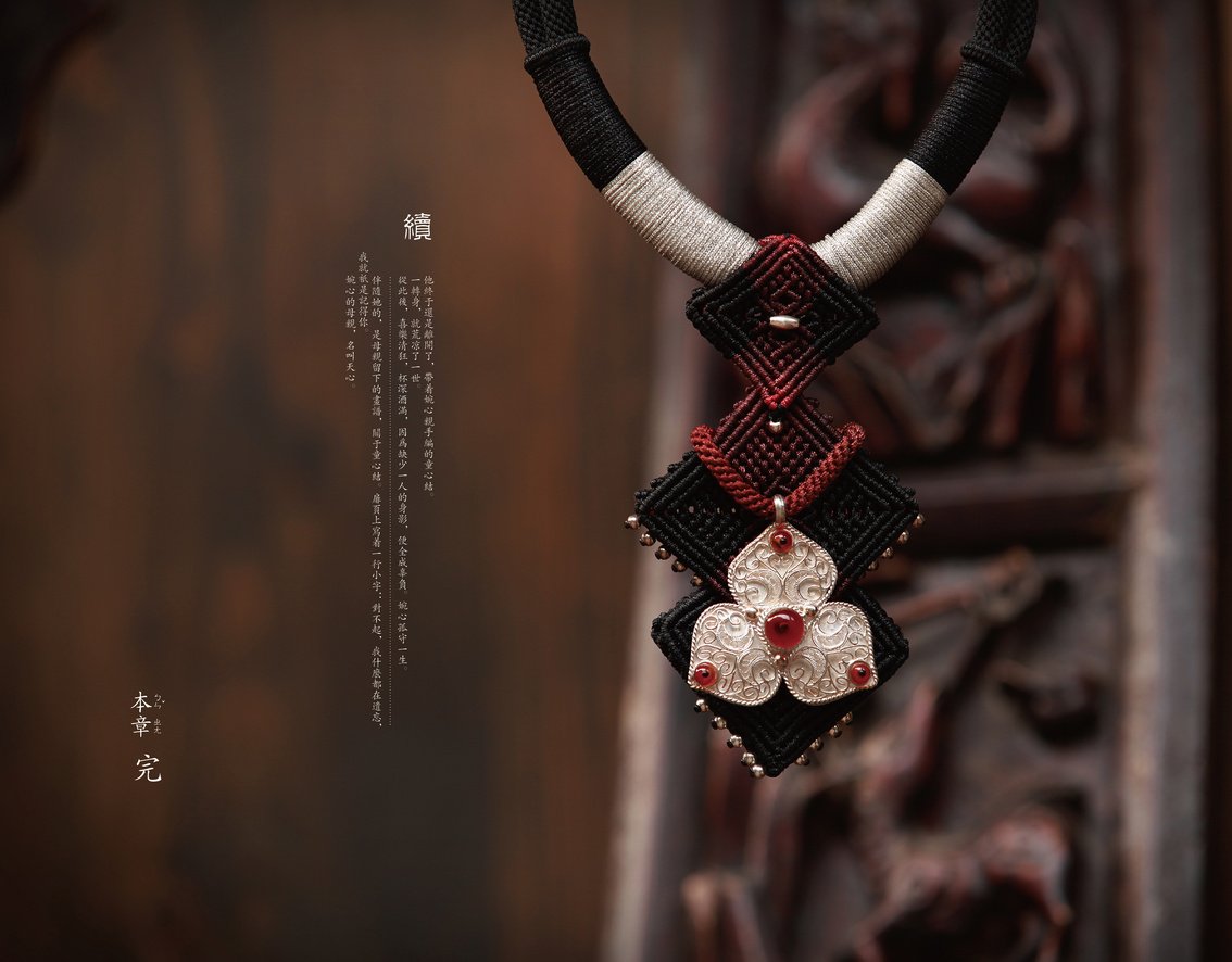 L'inspiration initiale vient d’une phrase de la du célèbre roman « Rêve de Demeures Rouge »: "La gourmette de jade blanc goûte la soupe de feuilles de lotus, le rossignol d'or noue habilement le gâteau de fleurs de prunier". Selon Yinger (un personnage du roman), "si l'on noue chaque motif, il faudrait dix ans pour les finir". Cela montre l'ampleur et la variété des motifs de nouage, présents partout, des palais impériaux aux foyers populaires.